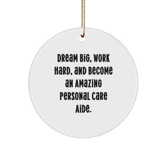 Personal Care Aide Gifts for Christmas, 'Dream Big, Work Hard, And Become An Amazing Personal Care Aide!' Circle Ornament, Gifts from Family to Friends