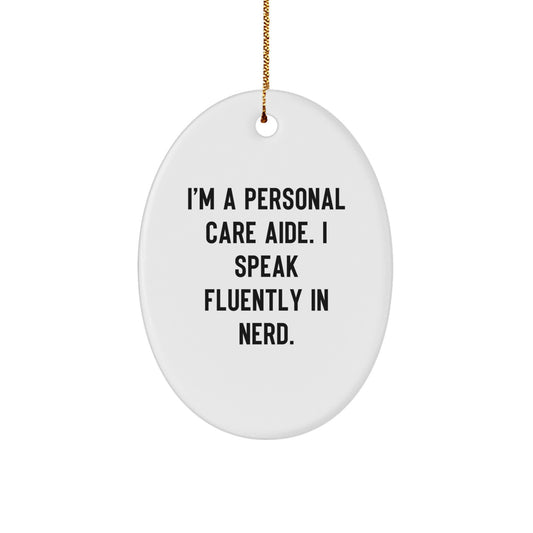Funny Personal Care Aide Gifts from Friends, Personal Care Aide Oval Ornament with 'I'm A Personal Care Aide. I Speak Fluently In genius.' Quote, Christmas Unique Gifts for Personal Care Aide