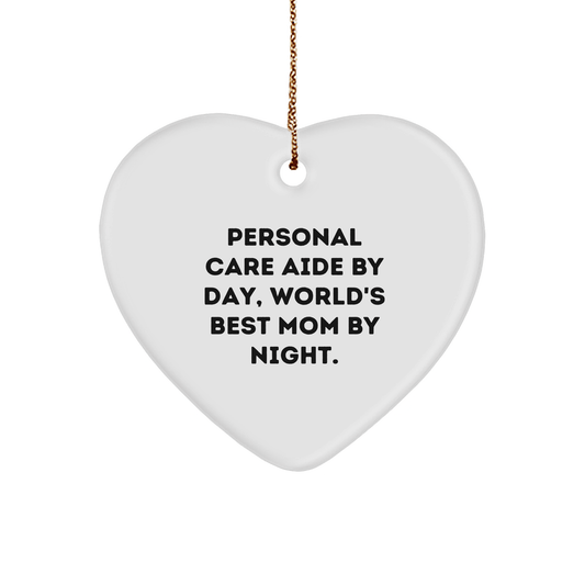 Personal Care Aide By Day, World's Best Mom By Night Gifts - Heart Ornament for Christmas
