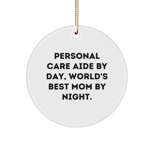 Personal Care Aide Gifts from Friends, World's Best Mom By Night Circle Ornament, Funny Christmas Memorable Present for Women