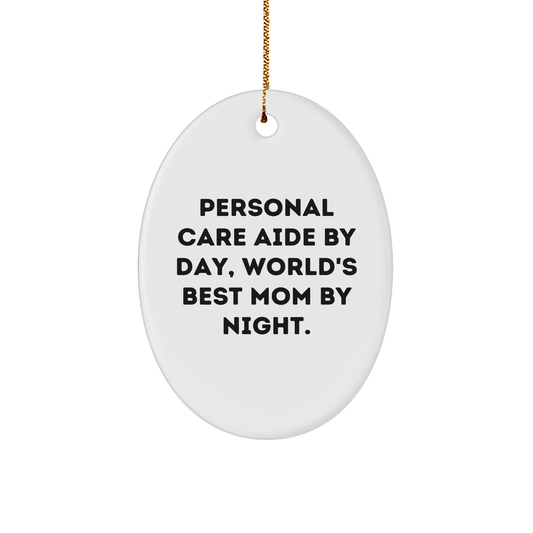 Personal Care Aide Gifts, Funny Quote Oval Ornament for 'World's Best Mom' - Gifts from Mom to Family, Friends, Coworkers, or Personal Care Aide