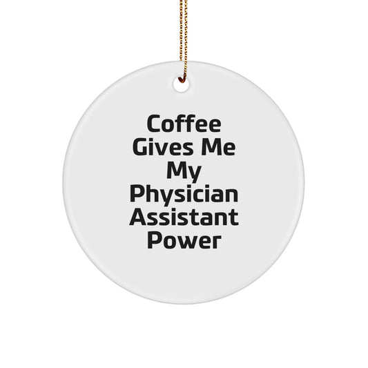 Funny Physician Assistant Gifts, 'Coffee Gives Me My Physician Assistant Power' Circle Ornament, Gifts from Friends, Family, or Coworkers for Physician Assistant, Christmas Unique Decor