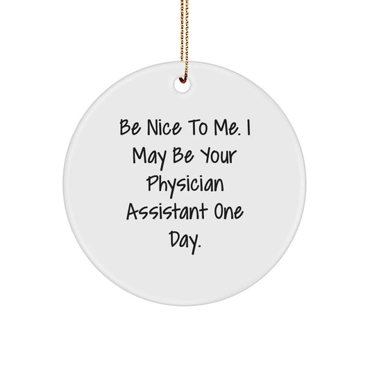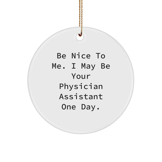 Funny Physician Assistant Gifts from Friends - Circle Ornament with Inspirational Quote 'Be Nice To Me. I May Be Your Physician Assistant One Day.' for Christmas
