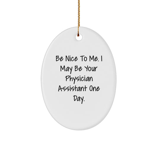 Funny Physician Assistant Gifts from Friends - 'Be Nice To Me' Oval Ornament for Christmas