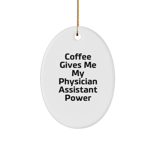 Gifts from Friends and Family for Physician Assistant Oval Ornament, 'Coffee Gives Me My Physician Assistant Power', Christmas Unique Gifts