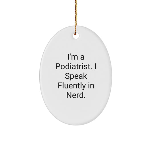 Funny Podiatrist Gifts for Men, Oval Ornament with 'I'm A Podiatrist. I Speak Fluently In genius.' Quote, Ships with Gold Cord - Gifts from Family, Christmas Unique