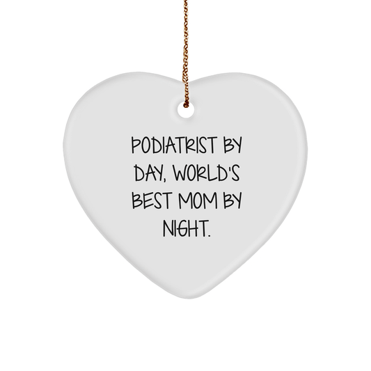 Podiatrist Gifts from Mom, Heart Ornament for Christmas - 'Podiatrist By Day, World's Best Mom By Night.'
