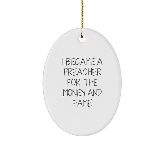 Funny Preacher Gifts for Men - I Became A Preacher For The Money And Fame Oval Ornament, Christmas Unique Presents from Friends