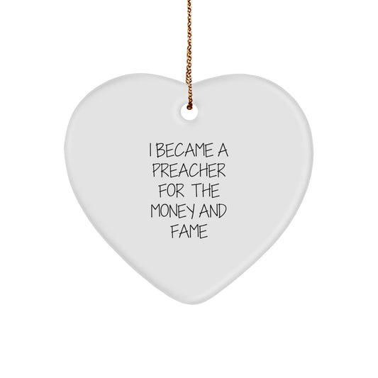 Funny Preacher Gifts from Friends, Heart Ornament for Preachers, I Became A Preacher For The Money And Fame Quote, Christmas Unique Gifts for Him Her