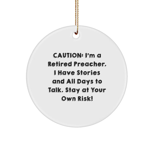 Funny Preacher Gifts from Men to Preacher Friends - Caution: I'm A Retired Preacher. I Have Stories And All Days To Talk. Stay At Your Own Risk! - Christmas Circle Ornament