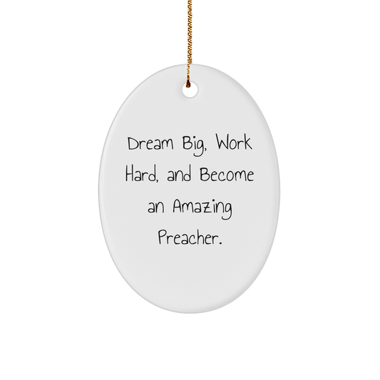 Inspirational Preacher Gifts for Men, Oval Ornament with 'Dream Big, Work Hard, And Become An Amazing Preacher.' Quote, Christmas Unique Gifts from Family to Friends
