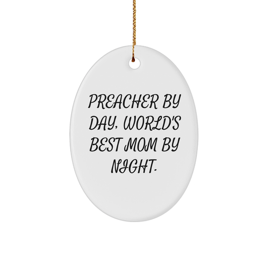 Preacher Gifts by Day, Funny Oval Ornament by Night, Gifts from Family for Preacher, Christmas Unique