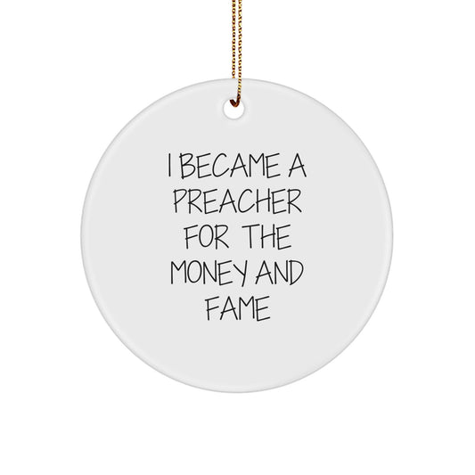 Funny Preacher Gifts for Christmas - 'I Became A Preacher For The Money And Fame' Star Ornament, Gifts from Friends to Preacher