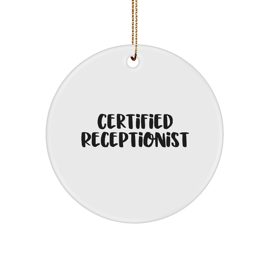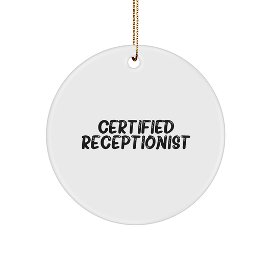 Funny Receptionist Gifts from Friends - 'Certified Receptionist' Circle Ornament, White, 2.75'' Tall, for Christmas