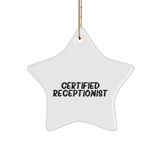 Funny Certified Receptionist Star Ornament Gifts from Friends to Receptionists, Unique Christmas Unique Gifts for Women, Men, Coworkers, Family, Inspirational Quote