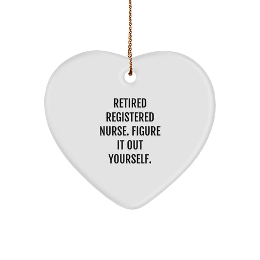 Registered Nurse Gifts, Funny Heart Ornament, 'Retired Registered Nurse. Figure It Out Yourself.' Quote, Gifts from Family to Registered Nurse, Christmas Unique Gifts