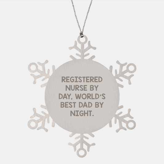 Registered Nurse Gifts from Men - Snowflake Ornament for Christmas, 'Registered Nurse By Day, World's Best Dad By Night.'