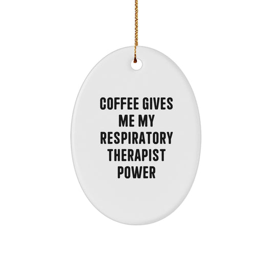Funny Respiratory Therapist Gifts for Christmas - Oval Ornament with 'Coffee Gives Me My Respiratory Therapist Power' Quote - Gifts from Friends and Family