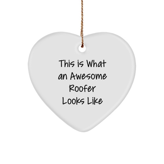 Funny Roofer Gifts from Friends for Christmas - Heart Ornament with 'This Is What An Awesome Roofer Looks Like'