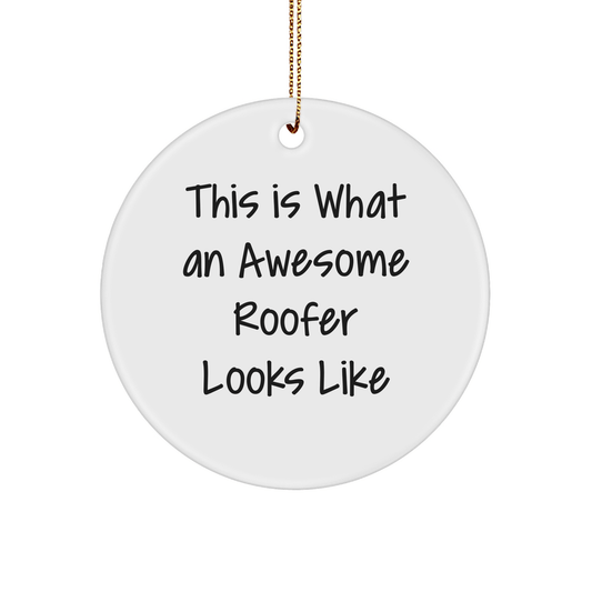 Funny Roofer Gifts - 'This Is What An Awesome Roofer Looks Like' Circle Ornament for Christmas - Gifts from Friends to Family