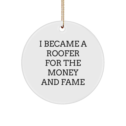 Roofer Gifts for Men from Family - I Became A Roofer For The Money And Fame Funny Circle Ornament, White, 2.75" tall, Easy Hanging Christmas Unique Gift