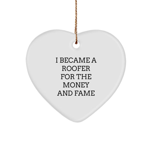 Roofer's Heartfelt Gift for Christmas - 'I Became A Roofer For The Money And Fame' Quote, Heart Ornament for Men, Gifts from Friends, Coworkers, or Family