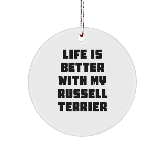 Russell Terrier Dog Gifts, Funny Quote Circle Ornament for Men, Women, Friends, Family, 'Life Is Better With My Russell Terrier Dog', Christmas Unique Presents