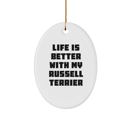 Russell Terrier Dog Lover's Unique Christmas Unique Gift, Oval Ornament, 'Life Is Better With My Russell Terrier', Gifts from Family for Russell Terrier Dog Owners