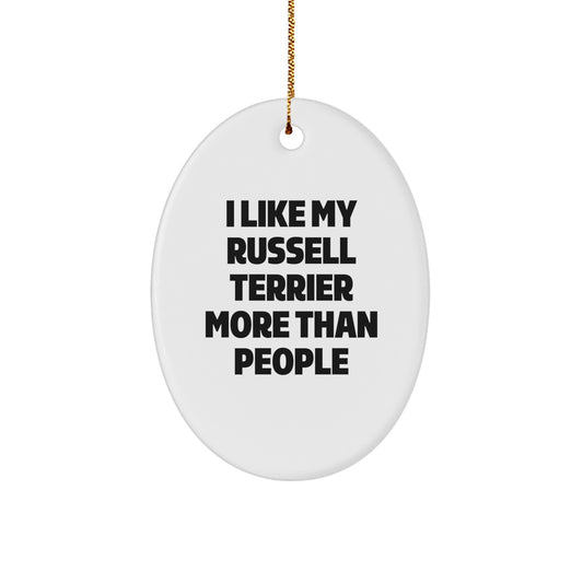 Funny Russell Terrier Dog Lover Gifts from Friends - I Like My Russell Terrier More Than People Oval Ornament for Christmas