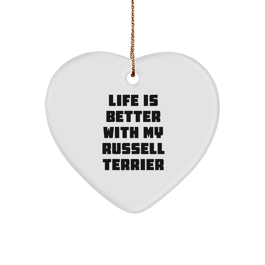 Russell Terrier Dog Heart Ornament Gifts for Men, Funny Quote 'Life Is Better With My Russell Terrier' Christmas Unique Gifts from Friends