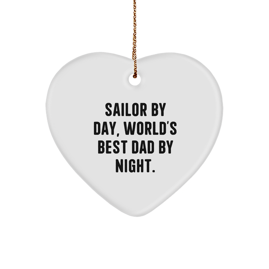 Sailor By Day, World's Best Dad By Night. Funny Sailor Gifts, Heart Ornament for Men, Women, Friends, Family, Christmas Decorations