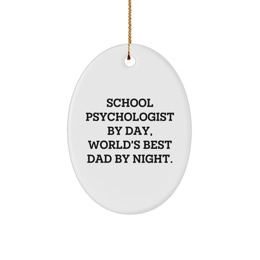 Funny School Psychologist Gifts by Day, Unique Oval Ornament for Christmas from Men to School Psychologist By Night, World's Best Dad - Gifts for School Psychologist