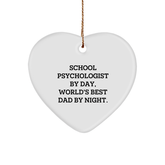 Funny School Psychologist Gifts by Day, World's Best Dad by Night Heart Ornament, Christmas Unique Gifts for School Psychologist, Gifts from Mom, Gifts for School Psychologist