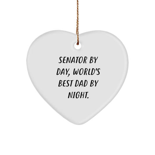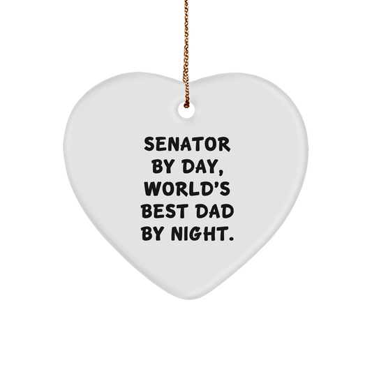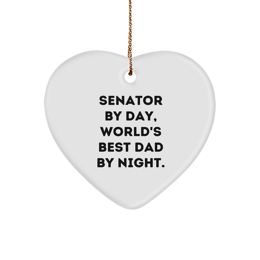 Senator By Day, World's Best Dad By Night. Heart Ornament Gifts from Men to Family, Unique Christmas Unique Gifts for Senator