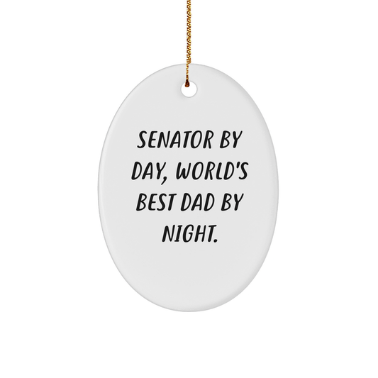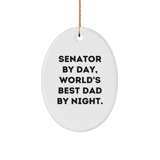 Senator Gifts for Men - Oval Ornament, 'Senator By Day, World's Best Dad By Night.' - Funny Christmas Unique Gift for Senator