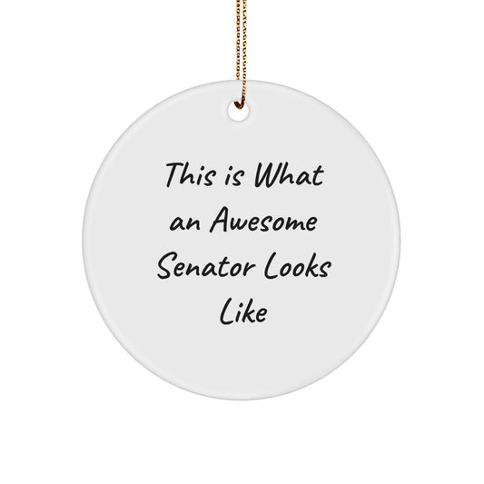Funny Senator Gifts from Friends to Family - 'This Is What An Awesome Senator Looks Like' Circle Ornament for Christmas