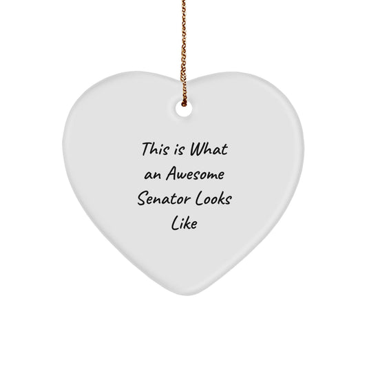 Funny Senator Gifts, Heart Ornament with 'This Is What An Awesome Senator Looks Like' Quote, Perfect for Christmas Unique Gifts from Friends, Family, or Coworkers