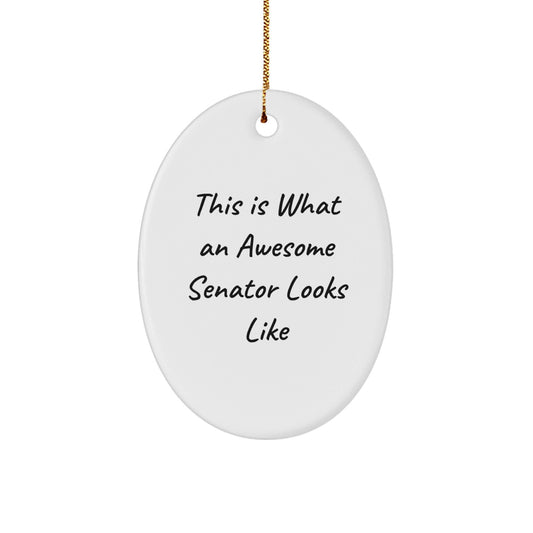 Funny Senator Quotes Oval Ornament, Gifts from Friends to Senator, This Is What An Awesome Senator Looks Like, White Oval Shaped, Christmas Unique Gifts for Senator
