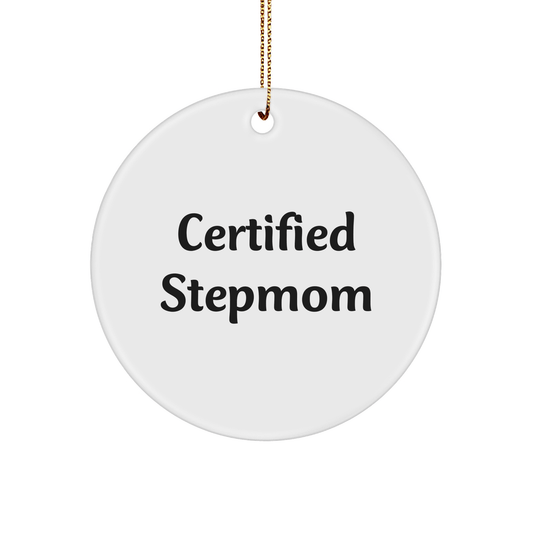 Funny Stepmom Gifts from Men for Women - 'Certified Stepmom' Circle Ornament for Christmas Decorations, White, 2.75" tall
