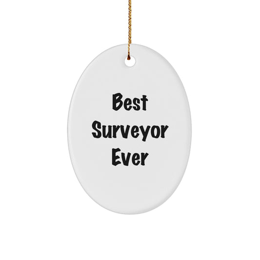 Funny Best Surveyor Ever Oval Ornament Gifts from Family for Christmas Decorations, White Oval Shaped MDF with High Gloss Finish, Vibrantly Printed Quote for Surveyor Enthusiasts