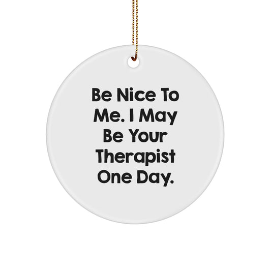 Funny Therapist Gifts from Friends - Be Nice To Me. I May Be Your Therapist One Day. Circle Ornament for Christmas