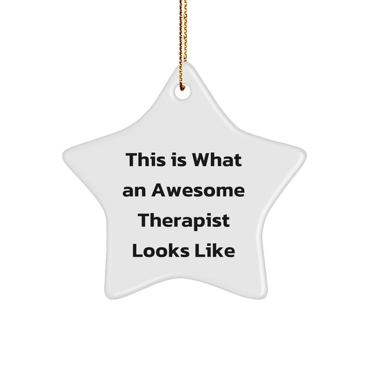 Funny Gifts from Friends for Therapist Christmas Star Ornament, 'This Is What An Awesome Therapist Looks Like' Motivational Quote, Star Shaped, White Color, for Gifts for Therapist