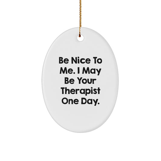 Funny Therapist Oval Ornament Gifts from Friends for Therapist, Be Nice To Me - Christmas Unique Gifts