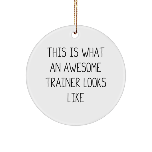 Funny Trainer Gifts from Friends, Christmas Unique Circle Ornaments with Quote 'This Is What An Awesome Trainer Looks Like' for Men, Women, Family