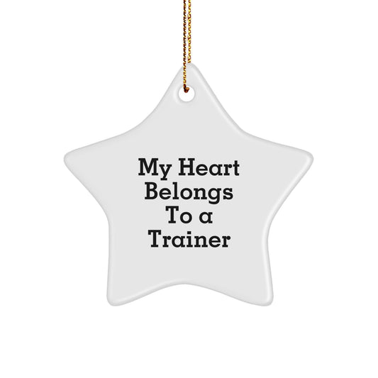 Funny Trainer Gifts from Friends for Him - Star Ornament with 'My Heart Belongs To A Trainer' Quote, Unique Christmas Memorable Present for Men