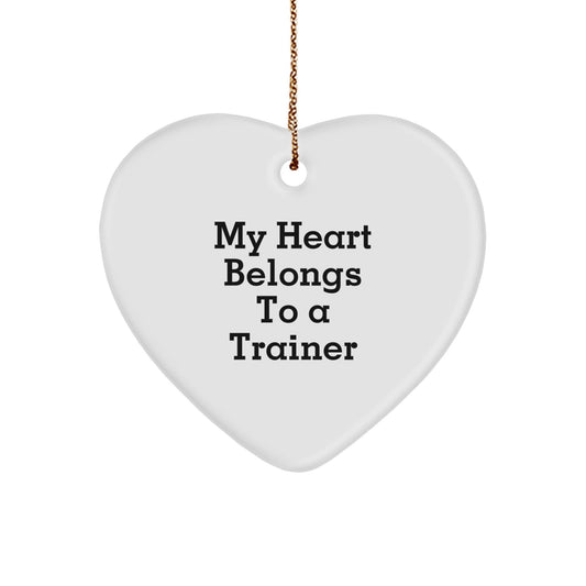 Funny Trainer Gifts, My Heart Belongs To A Trainer Heart Ornament, Christmas Unique Gifts from Friends for Trainers