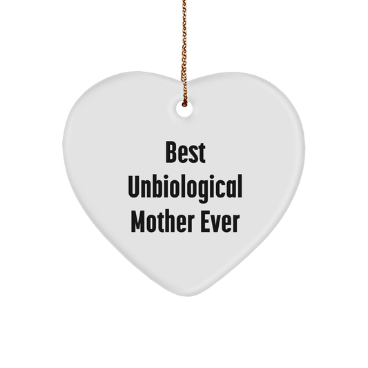 Funny Unbiological Mother Gifts, Heart Ornament with 'Best Unbiological Mother Ever' Quote, Perfect for Christmas Unique Gifts from Family, Friends, or Coworkers to Unbiological Mother