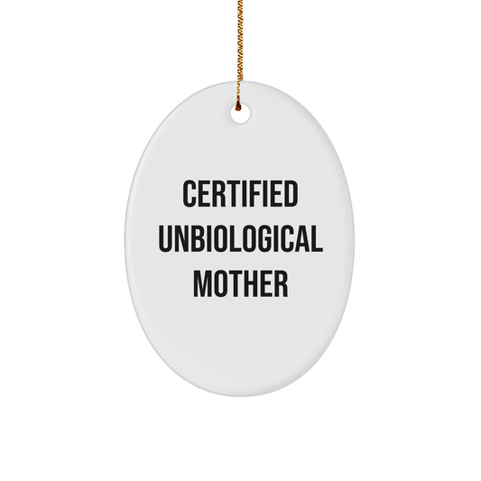 Funny Unbiological Mother Gift for Oval Ornament Christmas, 'Best Unbiological Mother Ever' Quote, Gifts from Men, Women, or Coworkers to Unbiological Mother, Oval Ornament