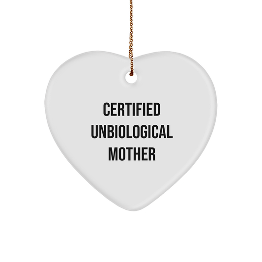 Funny Unbiological Mother Gifts, Heart Ornament from Friends - 'Certified Unbiological Mother' Quote, Christmas Unique Gifts for Unbiological Mother, Gifts from Women, Gifts for Unbiological Mother