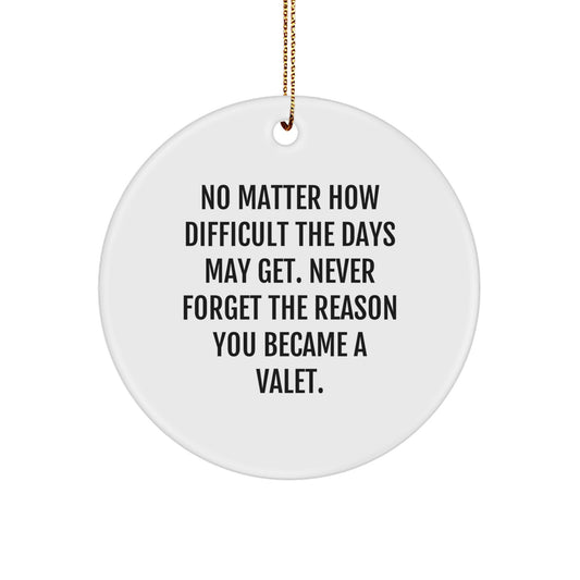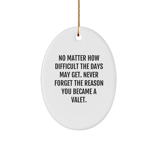 Inspirational Valet Gifts from Friends for Christmas - Oval Ornament with Quote 'No Matter How Difficult The Days May Get. Never Forget The Reason You Became A Valet.'